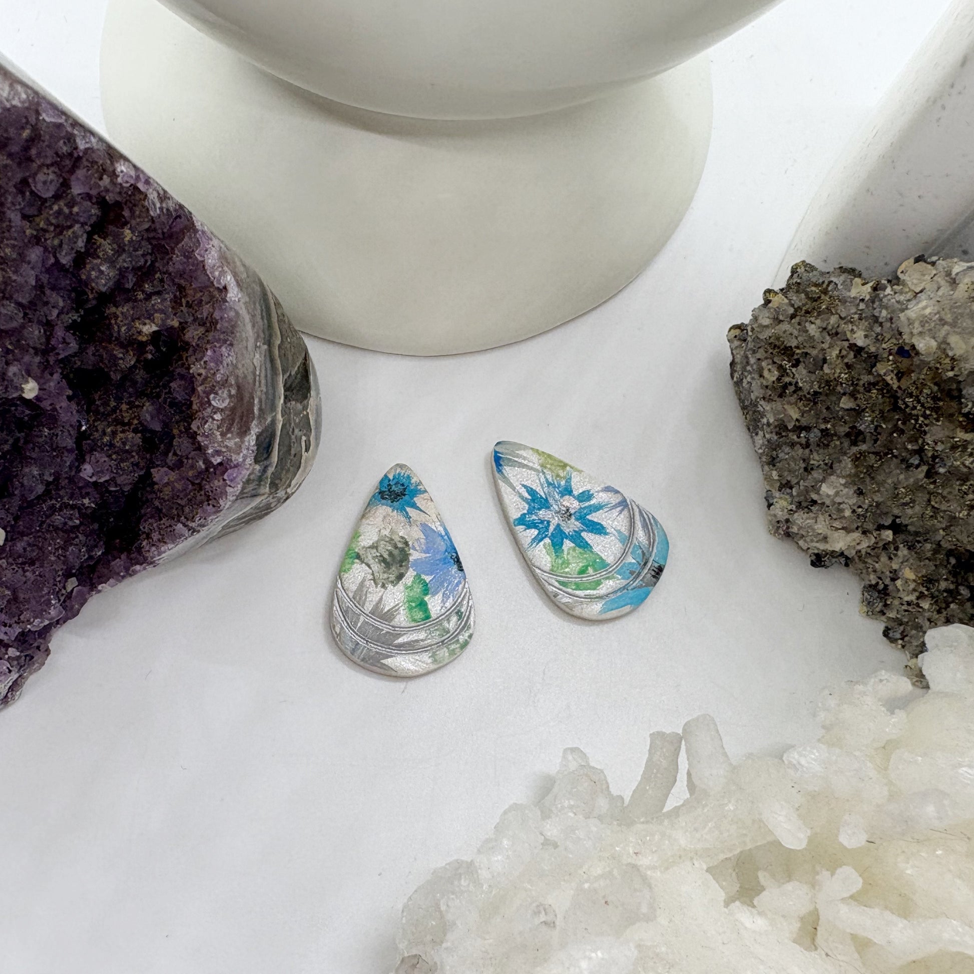 Get ready to make a colorful statement with Alex in Winter Florals! These hand painted stud earrings are perfect for sensitive ears with their titanium posts. So lightweight, you’ll forget you’re wearing them.
