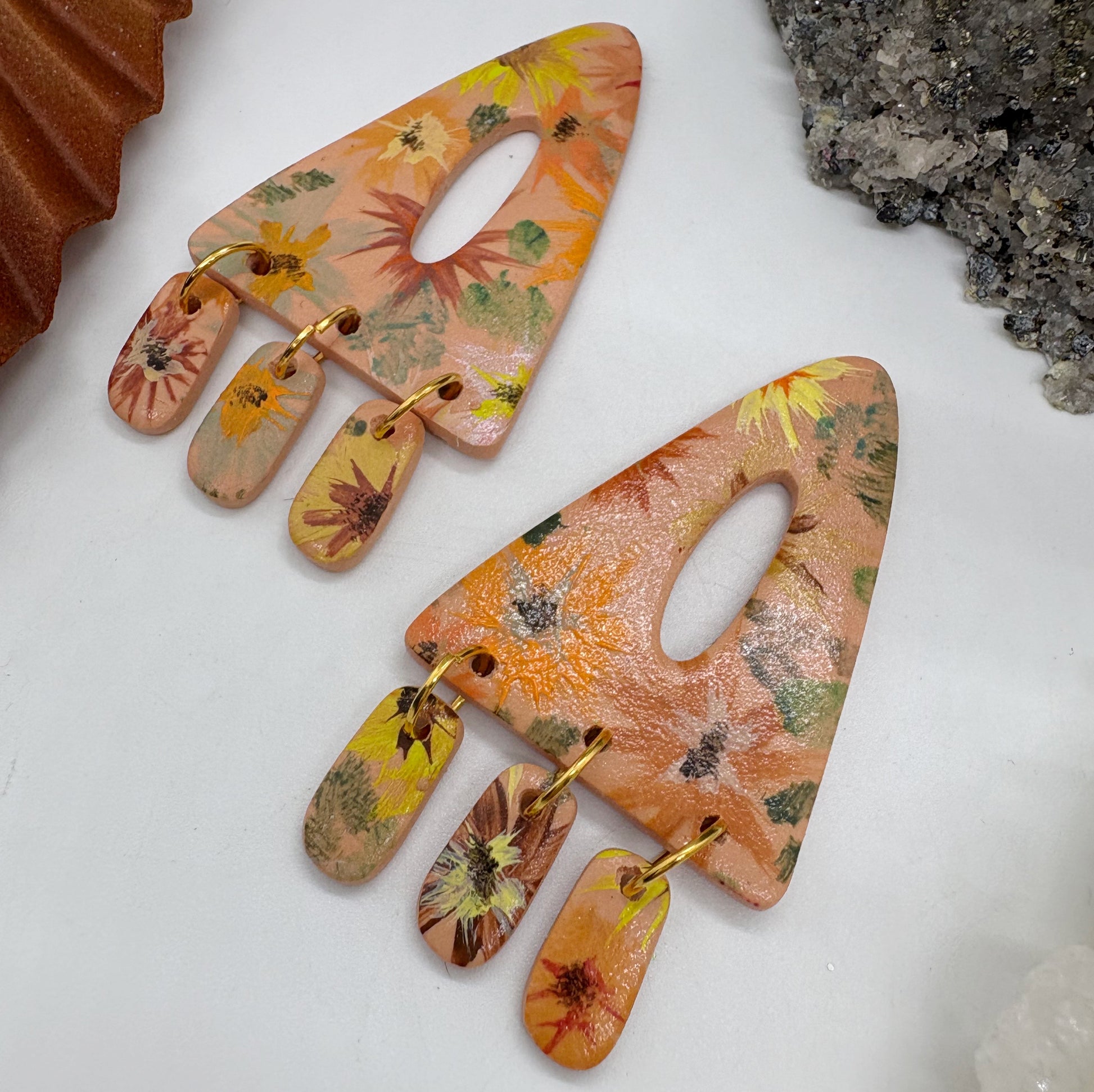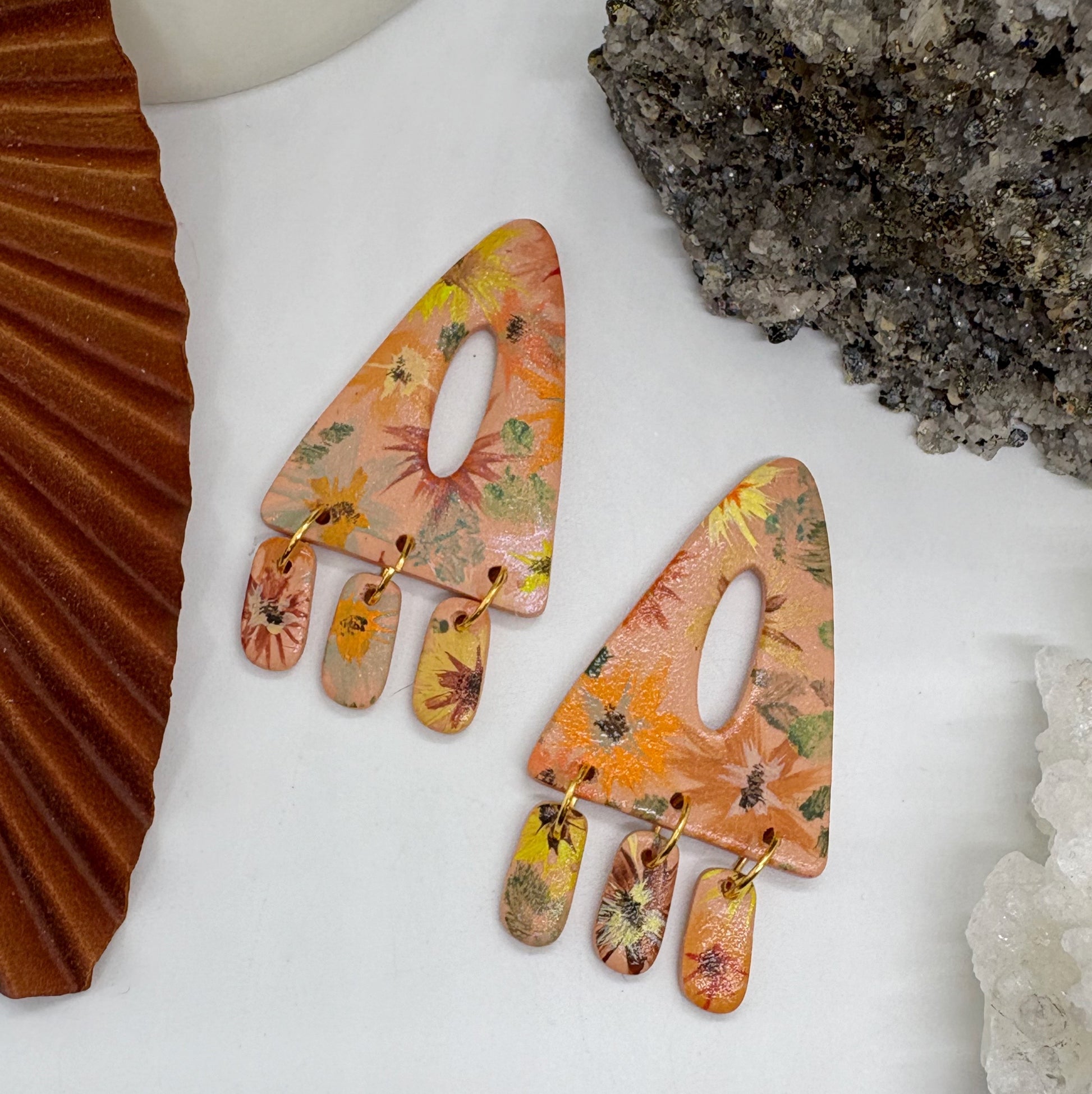 Get ready to make a colorful statement with Alex in Fall Floral! These hand painted dangle earrings are perfect for sensitive ears with their titanium posts. So lightweight, you’ll forget you’re wearing them.