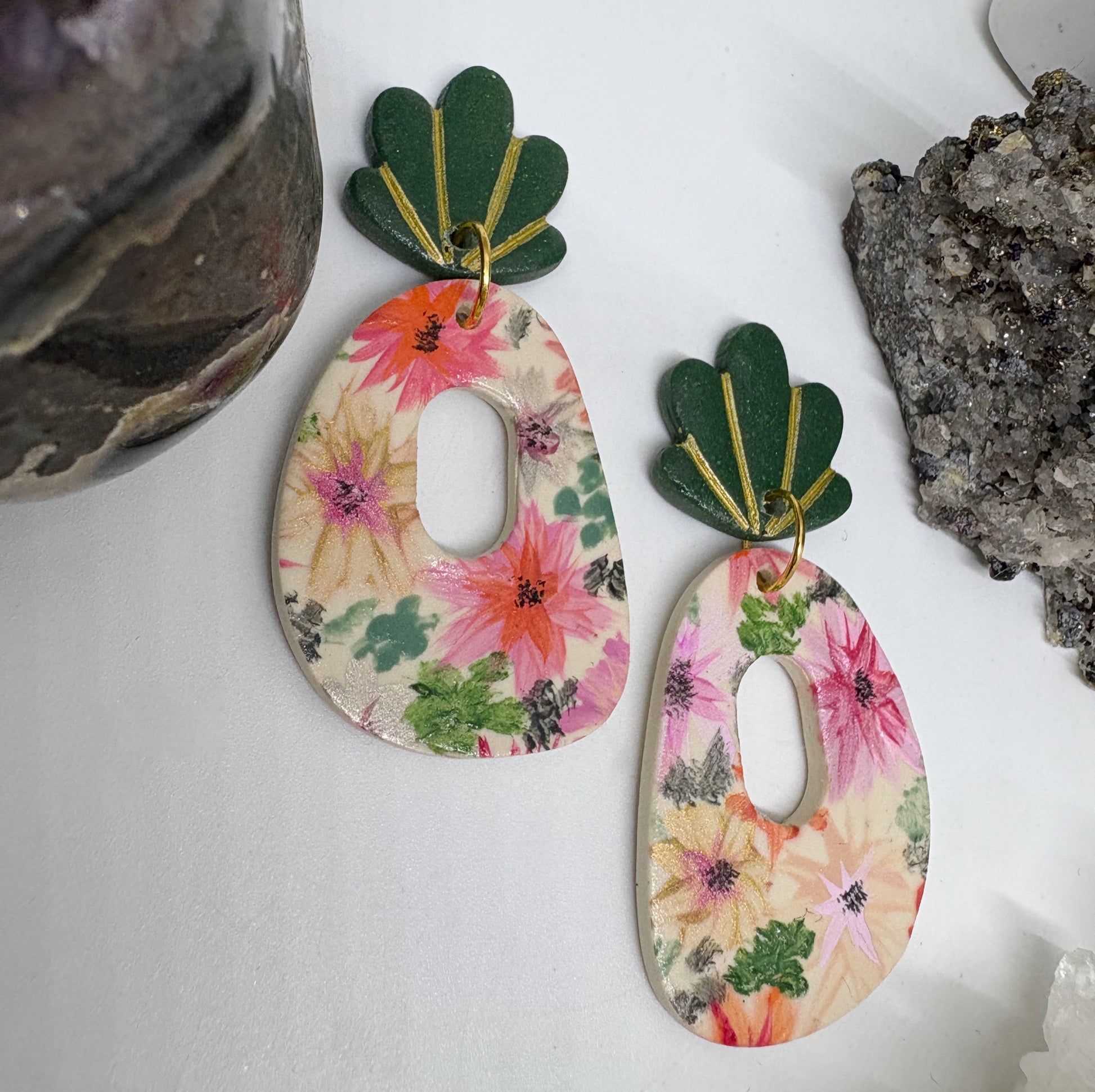 Introducing Ren in Spring Florals! Our dangle earrings feature lightweight titanium posts, perfect for sensitive ears. And with their trendy design, you'll forget you're even wearing them!(Get it? "Forget" = "Forget-me-not" flowers! Just one of the many quirks of these fun earrings!)